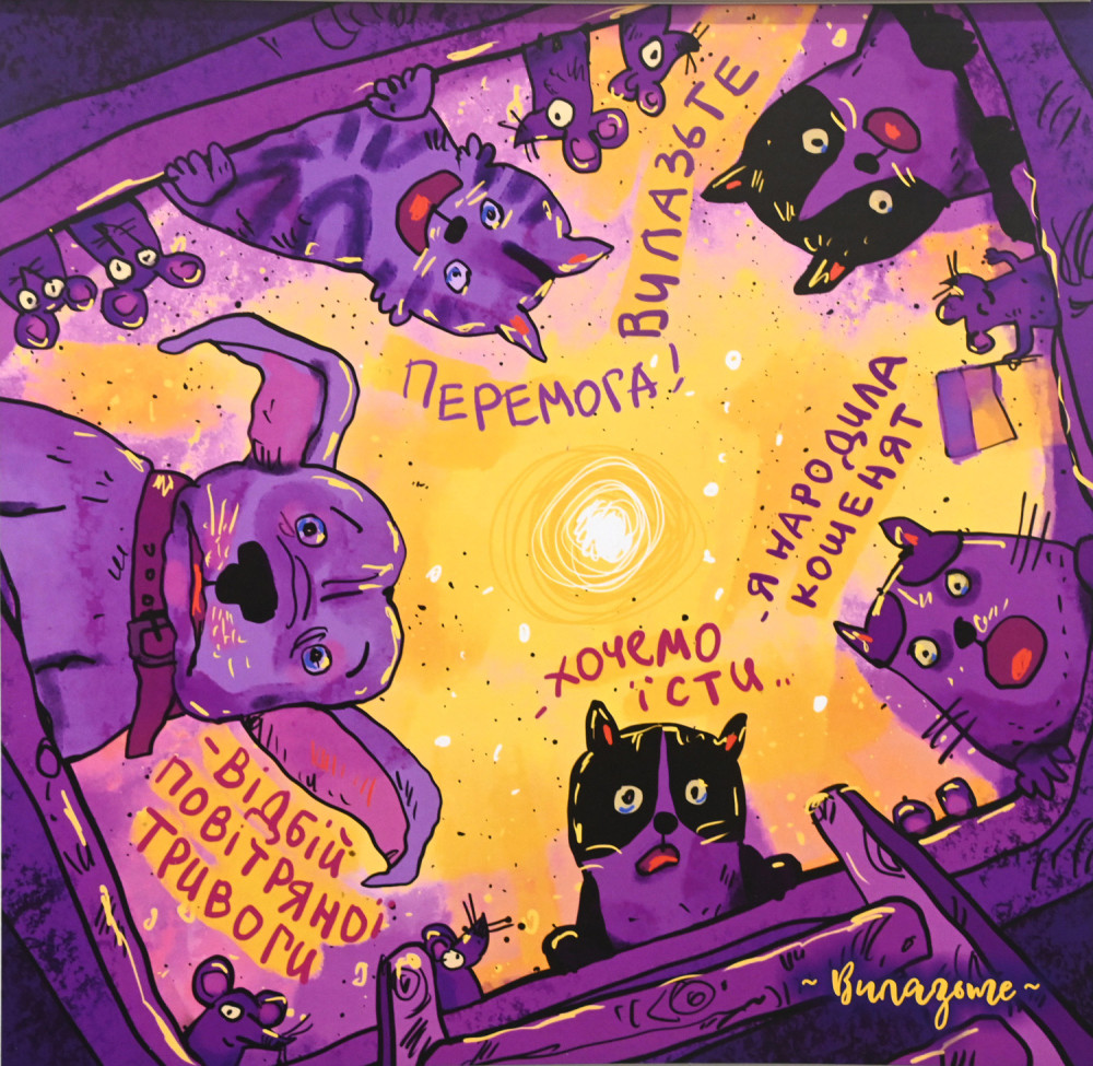 «Искусство помогает заново пережить тот сложный и тяжелый опыт, к которому человек не знает, как подступиться, — говорит заведующая выставочным отделом музея Мария Апрятова. – Мы видим, с какой добротой, с каким юмором художница переносит свое испытание. Я тоже фанат «Алисы в стране чудес», и мне близки листы, в которых герои любимой сказки оказываются в элементах сегодняшней реальности. Цвета этих работ позитивные, яркие, напоминающие о том, что жизнь продолжается, кто-то в кого-то влюбляется, кто-то отмечает день рождения, коты требуют еды… Мы не можем застыть, как мушки в янтаре, в этом страдании».