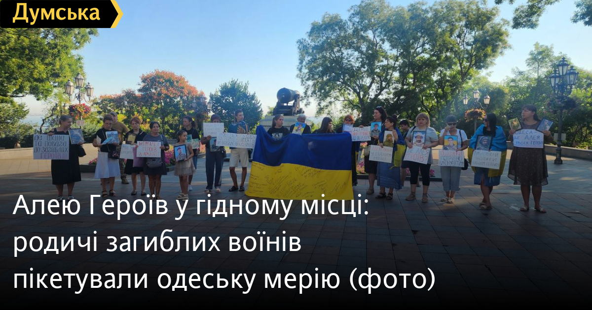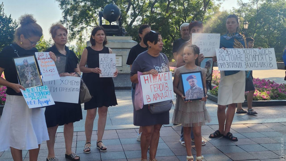 «День Незалежності трохи більше ніж за тиждень, День пам'яті загиблих захисників України 29 серпня, а нічого не зроблено, — зазначила Ангеліна Любчак. — У червні, коли обговорювали варіанти локацій, ми акцентували увагу на тому, що не хочемо розміщення Алеї в місцях відпочинку та розваг, на кшталт Аркадії, Міського саду або Дерибасівської. Учора нам стало відомо, що влада планує саме в Аркадії. Ми категорично проти і тому прийшли під мерію».