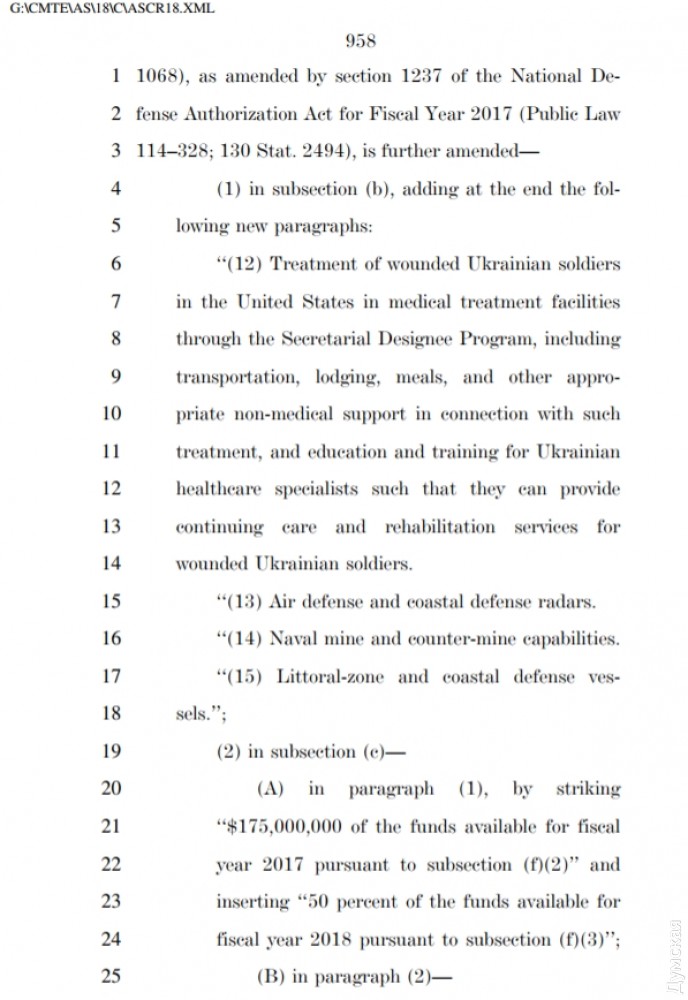 Несколько дней назад американские законодатели утвердили федеральным законом военный бюджет США на 2018 год. Украине тоже кое-что перепало — намного меньше, чем ожидалось, но все равно немало.