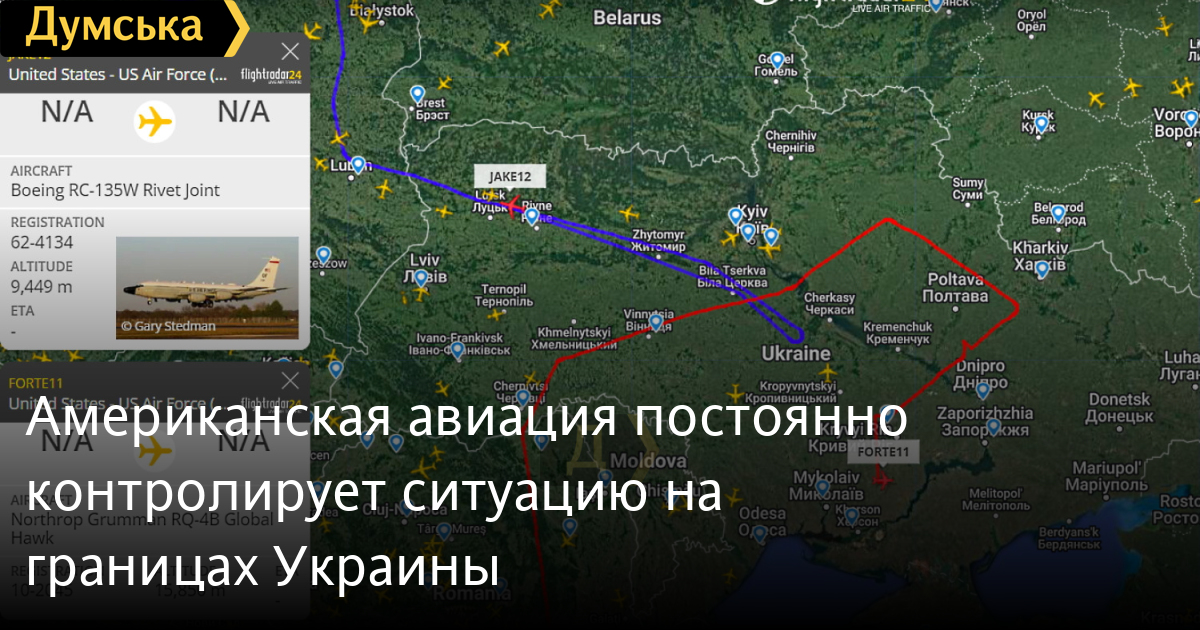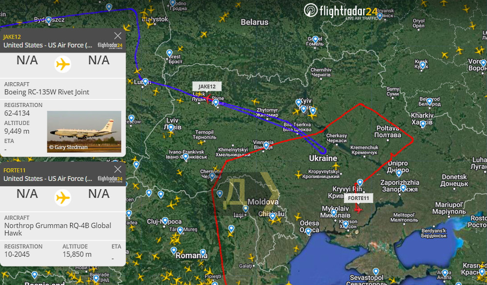 Сразу два американских разведчика сейчас мониторят ситуацию в воздушном пространстве Украины, передает корреспондент «Думской».