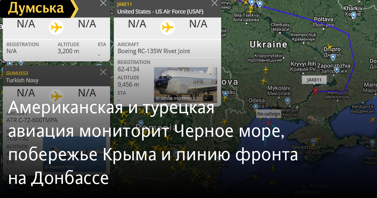 Сегодня американская разведывательная авиация продолжает патрулирование линии фронта, Приазовья и побережья оккупированного крымского полуострова.