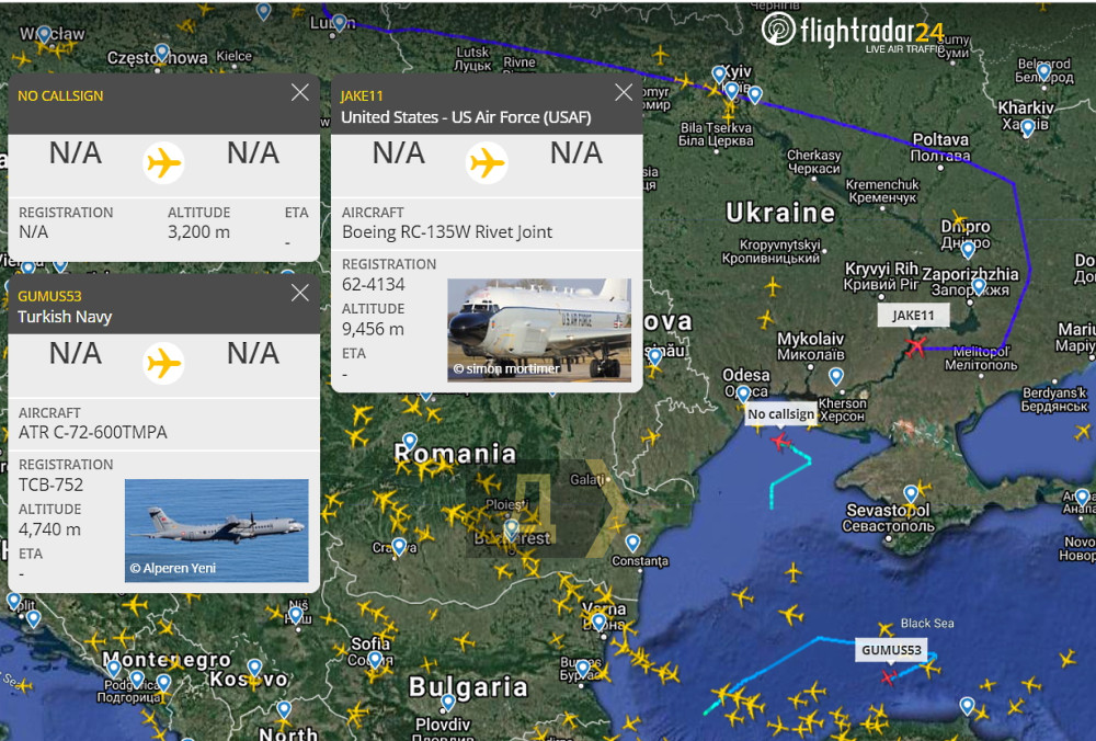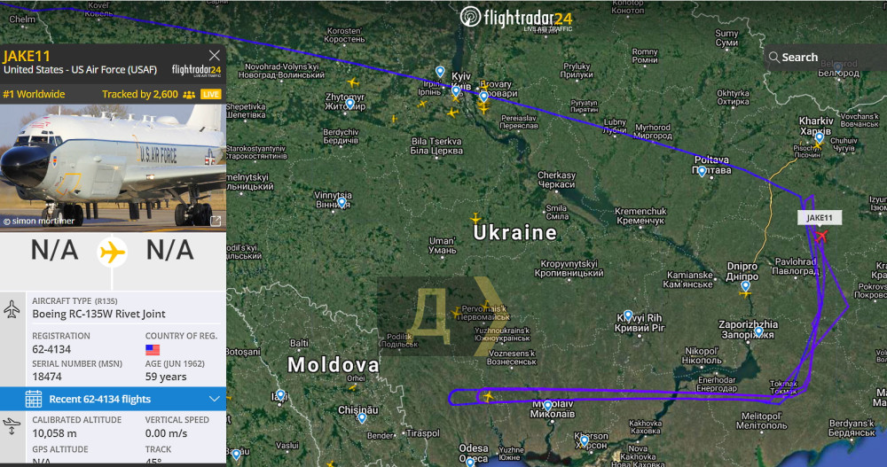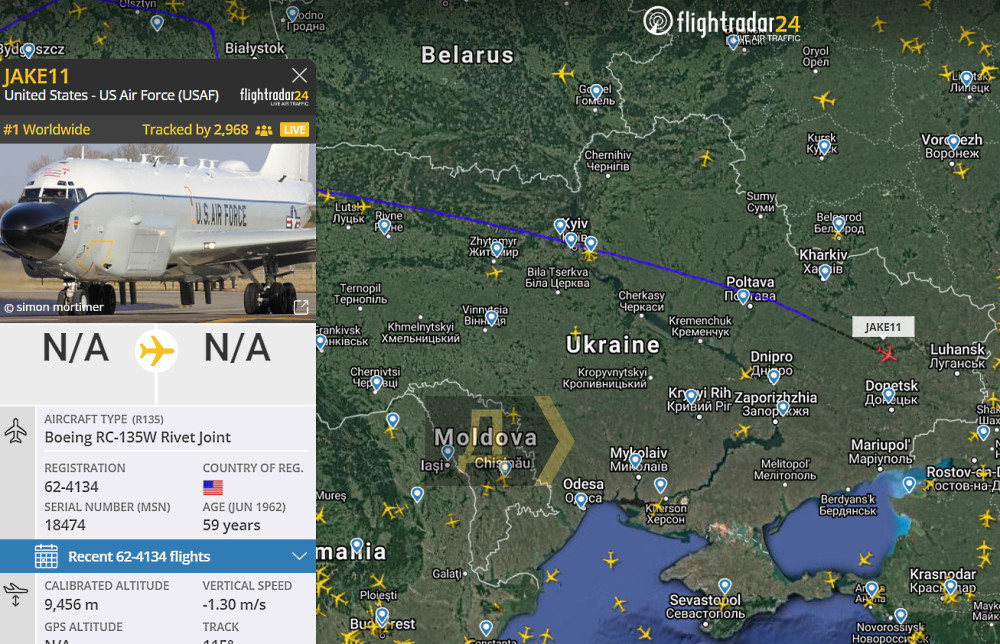 Днем в воздушное пространство Украины вошел Boeing RC-135W Rivet Joint, вылетевший с одной из авиабаз Великобритании.