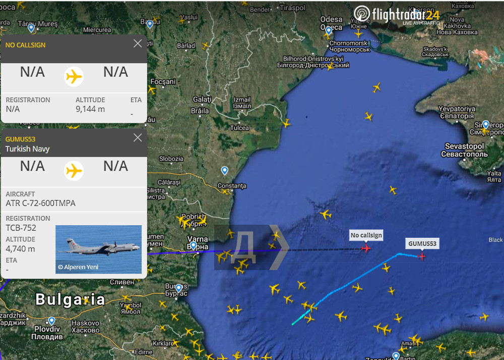 Турецкая противолодочная авиация также сегодня работала над центральной частью Черного моря — новейший ATR-C-72-600TMPA вылетал на охоту за российскими субмаринами.