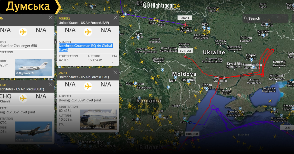 Сразу четыре американских самолета сейчас мониторят украинскую территорию.