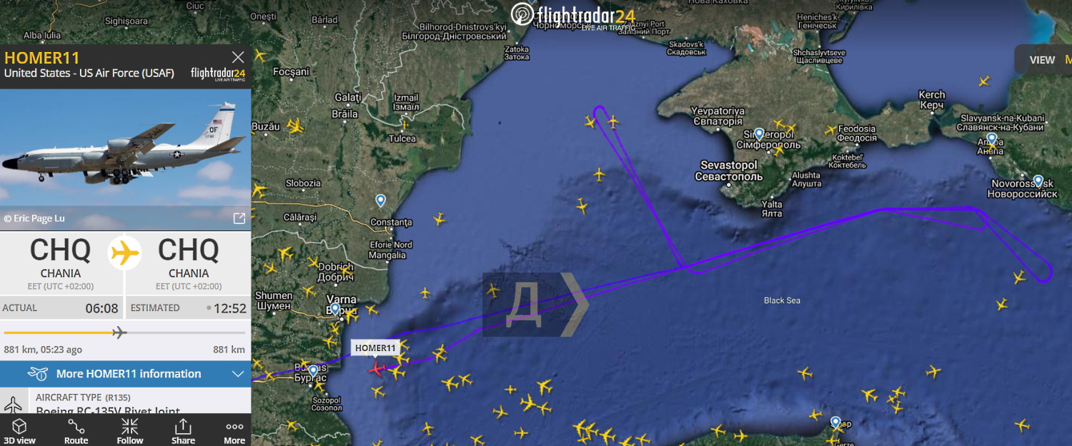 Американская воздушная разведка впервые в новом году провела мониторинг крымского побережьяСегодня американские самолеты впервые с начала 2022 года провели разведку побережья Крыма и Керченского пролива. Рано утром с авиабазы Ханья, что на греческом острове Крит, взлетел американский стратегический разведчик Boeing RC-135W Rivet Joint. Примерно в 8 часов он приступил к полетам вдоль крымского побережья — от мыса Тарханкут до Сочи. В 11:00 самолет закончил выполнение задания и ушел на аэродром вылета. Днем в центральную часть Черного моря с американской авиабазы Рамштайн, что в Германии, пришел самолет управления и целеуказания Boeing E-8C. Полет проходил на высоте 10300 метров и скорости около 700 км/час. Примерно в 18:00 борт закончил мониторинг, взяв курс на Германию. СМЕРТЬ РОССИЙСКИМ ОККУПАНТАМ! Заметили ошибку? Выделяйте слова с ошибкой и нажимайте control-enter |