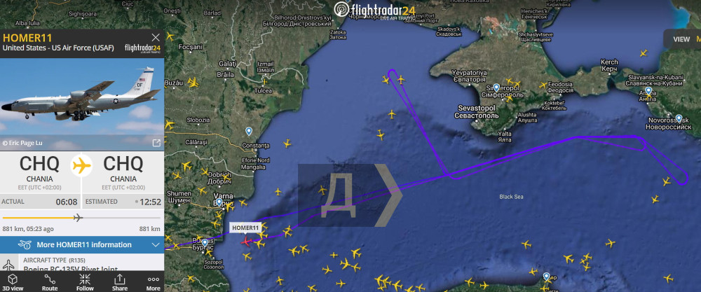 Сегодня американские самолеты впервые с начала 2022 года провели разведку побережья Крыма и Керченского пролива.