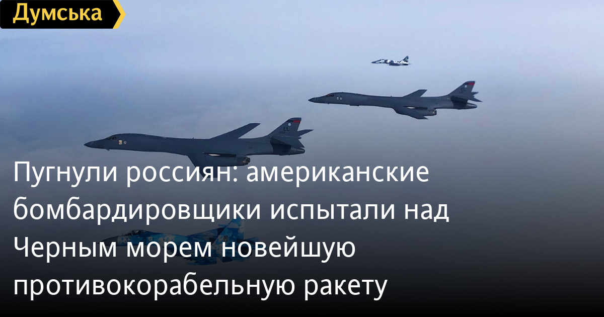 Во время миссии над Черным морем два B-1 провели испытательные пуски противокорабельной ракеты большой дальности AGM-158C LRASM. Ракета позволяет уничтожать боевые корабли противника на дальности до 1000 км в условиях сильного радиоэлектронного противодействия. Можно предположить, что в ответ на условную атаку Одессы бомбардировщиками Ту-22М3, проведенную агрессором 10 июля прошлого года, учебной целью для американцев послужили корабли ЧФ РФ.