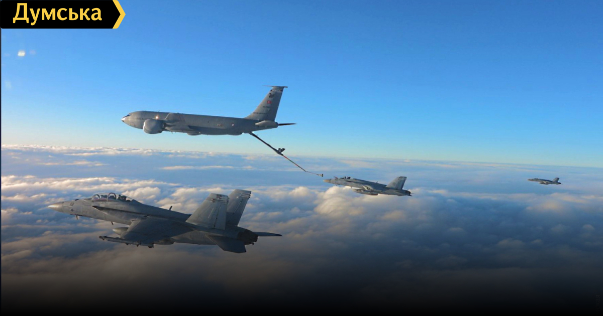 Напомним, 21 марта во второй половине дня над районом учений появились сразу три американских летающих танкера KC-135 Stratotanker, взлетевших с британской авиабазы Милденхолл. Дозаправка проводилась днем и в темное время суток.
