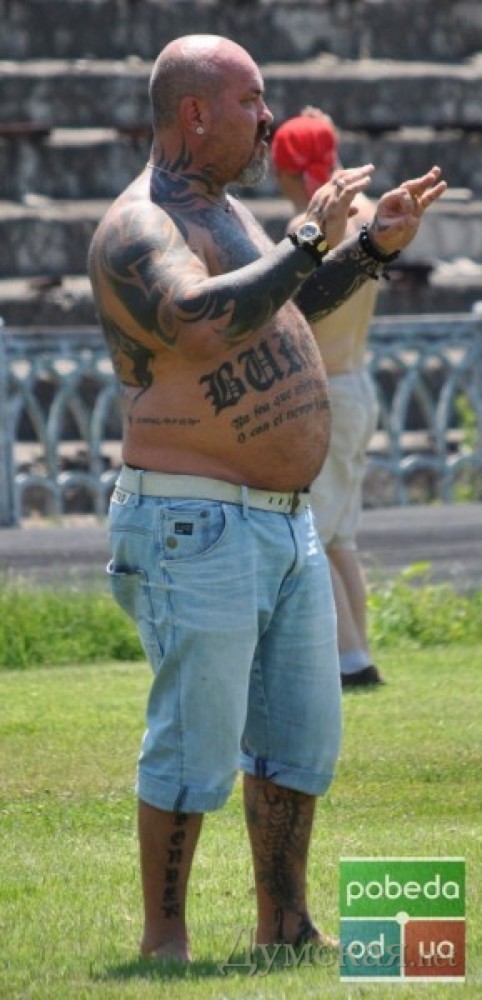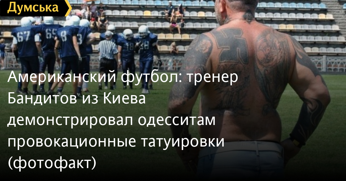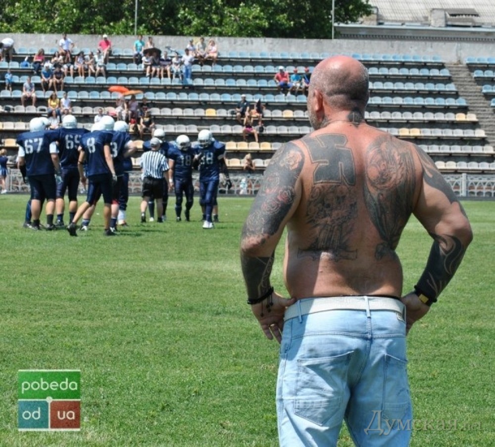 Американский футбол: тренер «Бандитов» из Киева демонстрировал одесситам провокационные татуировки (фотофакт)Во время домашнего матча одесских «Пиратов» и киевских «Бандитов» в рамках 6-го тура чемпионата Украины среди команд высшей лиги внимание болельщиков и журналистов было приковано к главному тренеру киевлян Владимиру Бжезинскому, пишет «Победа». 48-летний наставник команды поразил всех количеством татуировок на своем теле и необычным сочетанием изображений. СМЕРТЬ РОССИЙСКИМ ОККУПАНТАМ! Заметили ошибку? Выделяйте слова с ошибкой и нажимайте control-enter |