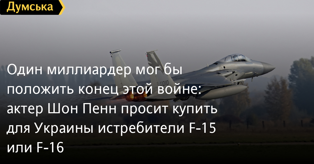 Шон Пенн просит миллиардеров приобрести для Украины 12 истребителей, превосходящих по техническим характеристикам российскую военную авиацию.