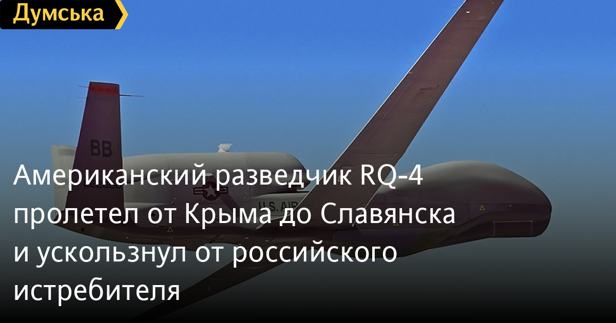Подойдя с запада к Крыму, он был обнаружен радиолокационными станциями страны-агрессора. Примерно в 10:36 с авиабазы Бельбек поднялся перехватчик Су-27СМ. Летчик «сушки» обнаружил американский беспилотник, но тот постоянно менял курс и высоту, поэтому путинский «сокол» много раз терял визуальный контакт. Игра в кошки-мышки продолжалась около 2,5 часов, после чего «Глобал Хоук» ушел через Николаевскую и Херсонскую область к Мариуполю, а затем повернул в северном направлении и прошел вдоль линии боевых действий на Донбассе.