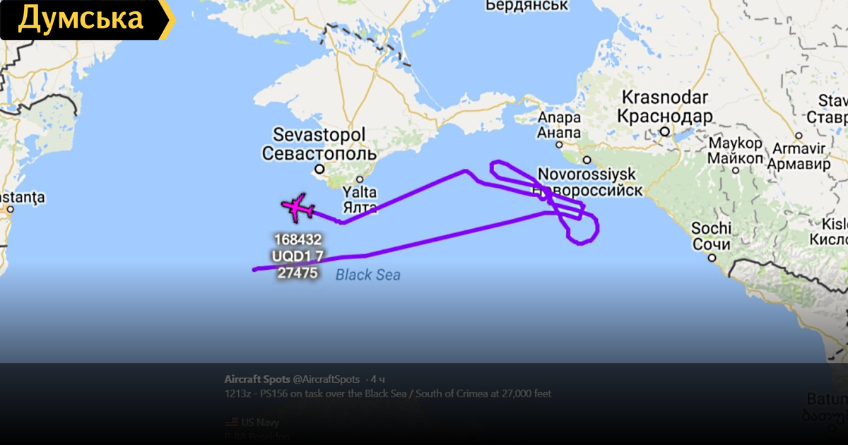 В понедельник американские разведывательные летательные аппараты совершили очередную комплексную разведку черноморских военных баз оккупанта. Сначала базовый патрульный самолет P-8 Poseidon борт 432, серийный номер 168432, покрутил «восьмерки» возле Новороссийска, а затем, пройдя над южным берегом Крыма, наматывал круги возле баз Севастополя.