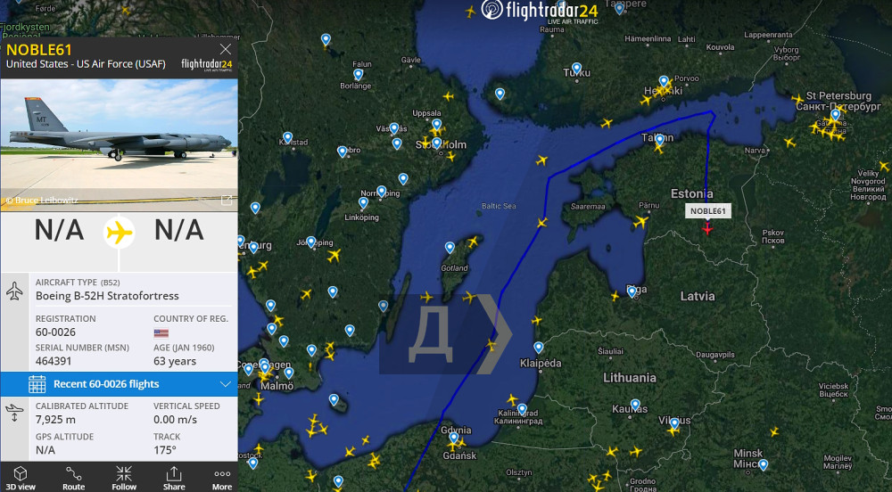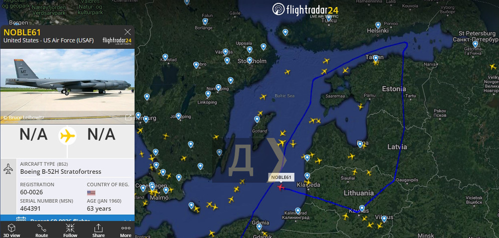 Кілька днів тому, 9 березня, інший B-52H також здійснив обліт Європи, дозаправившись над Румунією від літаючого танкера KC-135.