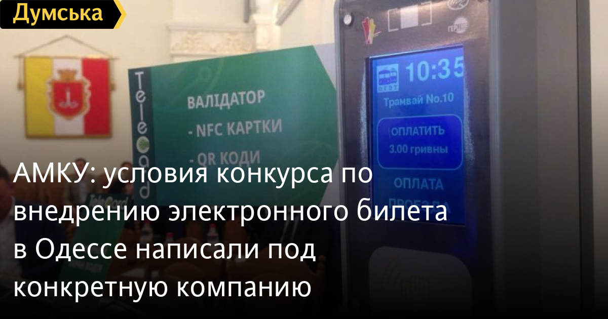 В связи с этим ведомство рекомендует мэрии провести новый конкурс, предварительно изменив его условия в соответствии с законом. Возможность принять в нем участие должны получить субъекты, не располагающие собственным конструкторским бюро и мощностями для производства валидаторов, а также сервисным центром в Одессе, но имеющие возможность заключить договоры с конструкторами и производителями.