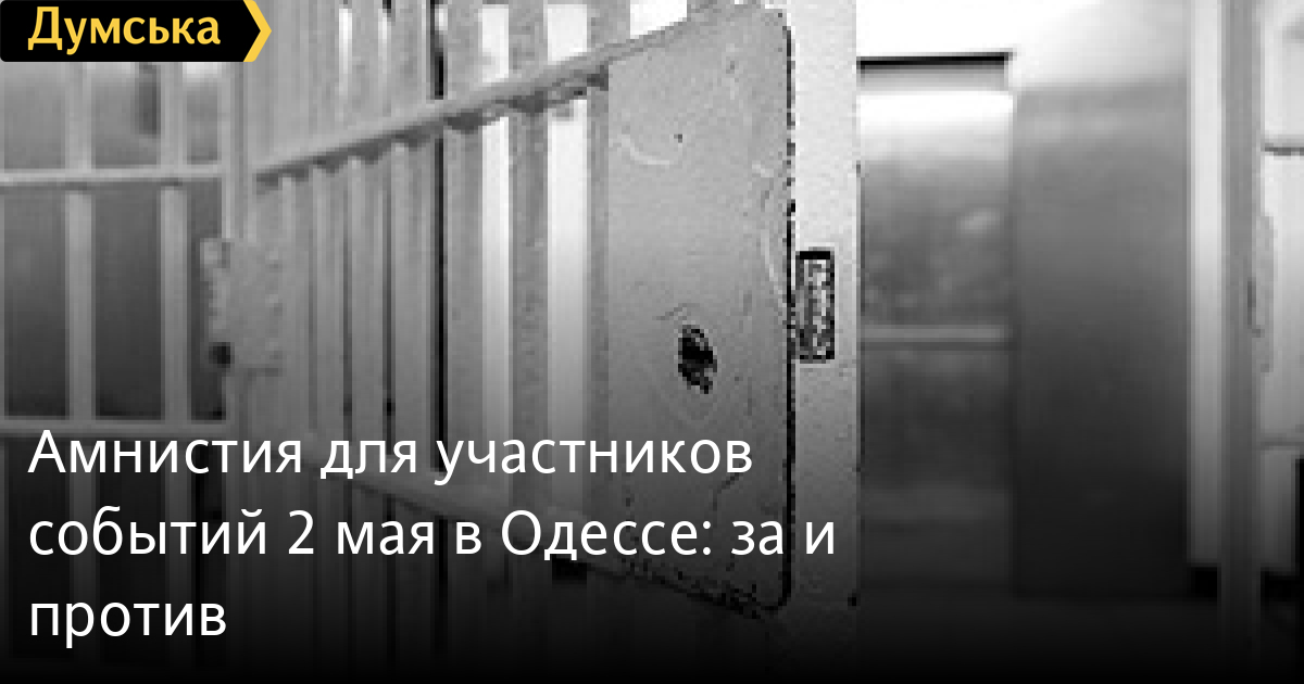 Нет, не согласен, что cлово «амнистия» применимо.Не нужно объявлять ее вовсе. Элементарный вопрос, кому амнистия, за что амнистия?Кому персонально? Есть куча видео-материалов, так надо определить, кто участники, кто и что совершил, включая и «представителей власти», руководство горисполкома, облисполкома, милиции, пожарных. Глупо привлекать к ответственности 30 человек, когда участвовала тысяча, но это не означает, что надо объявлять амнистию всем-подряд и непонятно по-какому поводу, так как даже определение не дано,что же произошло 2 Мая в Одессе,- называют «беспорядками» то что является попыткой захвата власти в городе.