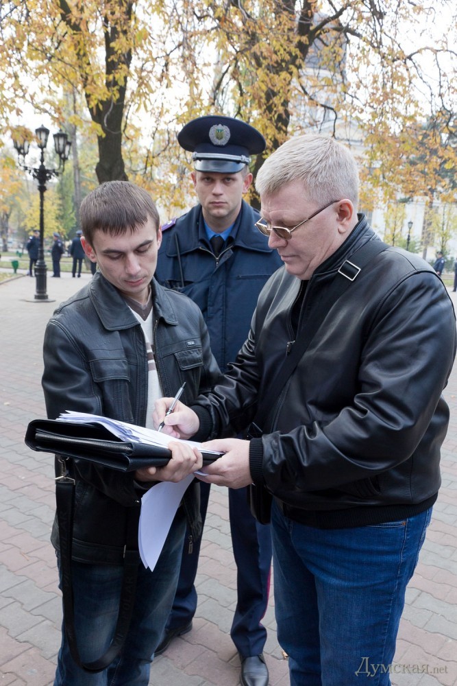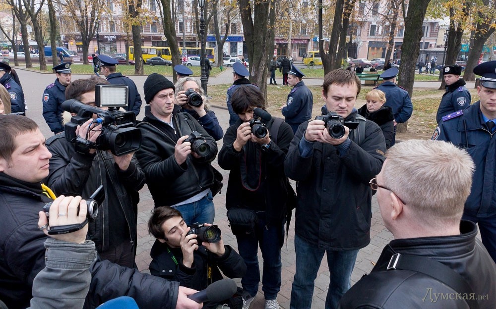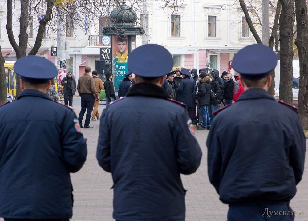 «Мы работаем в этом городе 15 лет. Мы последовательно выступали против произвола всех властей, начиная от Кучмы, Ющенко, Януковича. Нас ни в коем случае нельзя заподозрить в сепаратизме. Когда всем несогласным под одну гребенку запрещают выражать свое мнение – это установление авторитарного режима в этой стране. Правые организации работают в одной связке с городской властью, судебной системой, милицией, поэтому жаловаться тут некому. У нас есть огромный опыт акций, поэтому мы проявлять свою политическую активность так, что ее не смогут законными методами запретить», — сказал Азаров. Проконтролировать, как последователи Махно будут выполнять постановление суда, пришли не только представители милиции, но и два десятка активистов организации «Патриот Украины». По словам ее представителя Ивана Вышитого, патриоты вышли на патрулирование города Одессы, чтобы избежать всяческих проблем, связанных с желанием коммунистических и пророссийских сил устроить провокации. «Мы посмотрели, что милиция выполняет свои обязанности по охране правопорядка безупречно. Но если мы увидим какие-то проблемы, то будем применять к нарушителям гражданский арест, чтобы в дальнейшем передать их в руки милиции», — отметил Вышитый.