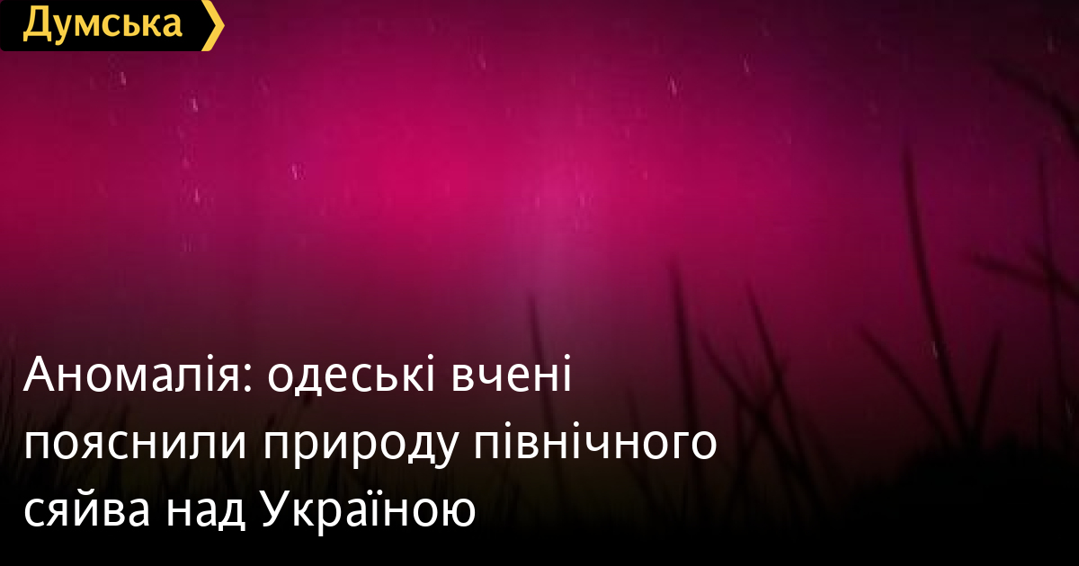 Аномалія: одеські вчені пояснили природу північного сяйва над Україною👍 225 ❤ 25 😁 5 😱 2 😢 1 Незвичайне для наших широт північне сяйво — малинові та зелені відблиски з'явилися в небі, зокрема, й Одеської області в ніч на 24 квітня. Це дивовижне природне явище найяскравішим закарбували жителі північних регіонів, передає кореспондент «Думської». Попри те, що полярне сяйво абсолютно нетипове для наших широт, унікальним назвати його не можна, заявив ректор Одеського державного екологічного університету Сергій Степаненко. «Це аномальність, викликана сонячною активністю, але все ж таки таке бувало і раніше. Нічого небезпечного в цьому немає, — зазначив учений. — Що ж стосується тих людей, які шукають якісь знаки, то вони можуть придумати ці знаки в будь-який час і пояснити їх чим завгодно. Тож немає сенсу переживати». Зазначимо, що північне сяйво спостерігали жителі Хмельницької, Волинської, Львівської областей та низки інших регіонів України.