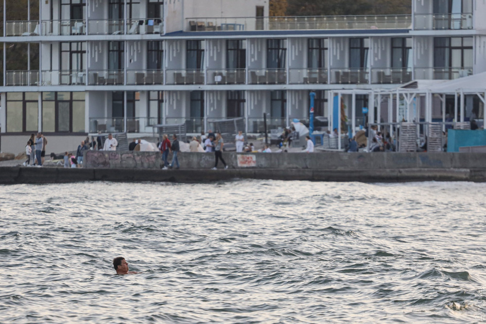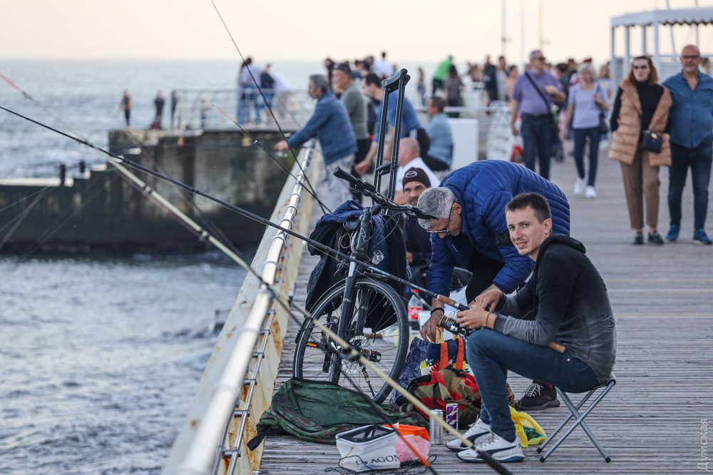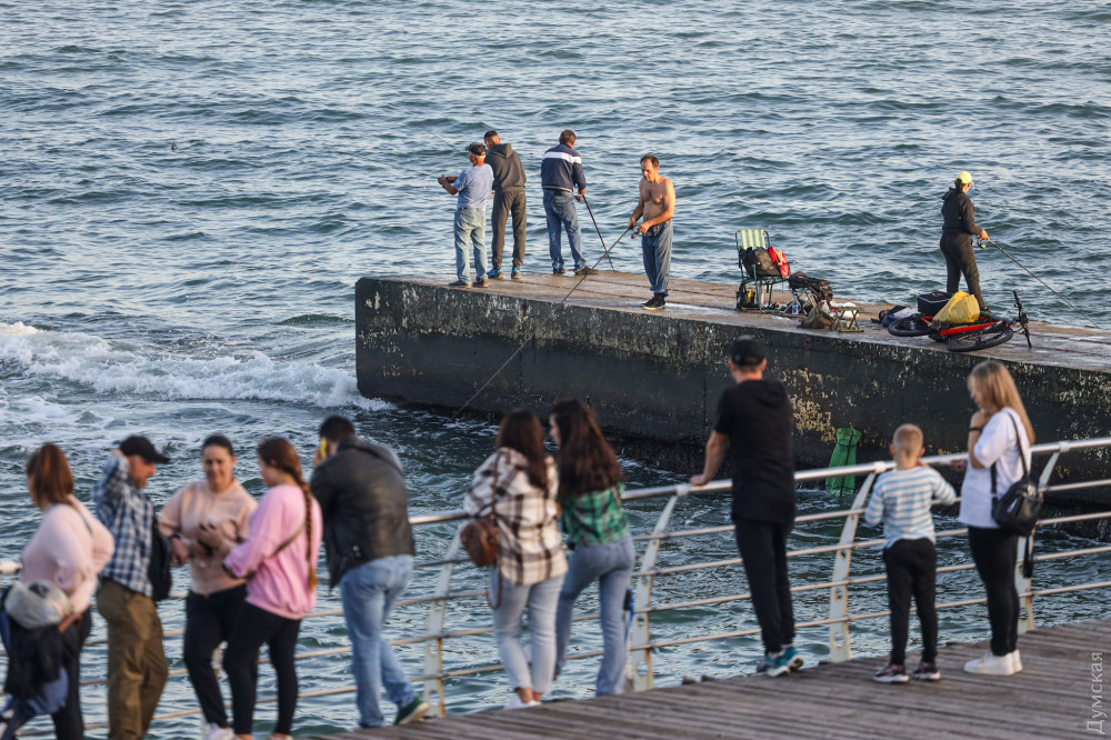 Відпочивальники ринули на пляжі, а рибалки захопили пірси в надії наловити саргана на рік уперед. Автомобільний спуск на Ланжерон застиг у заторі, а знайти місце на парковці внизу практично нереально. Дельфінарій уже готується до зими, працівники потроху збирають пальми з газонів, щоб пізніше відвезти їх на зимівлю.