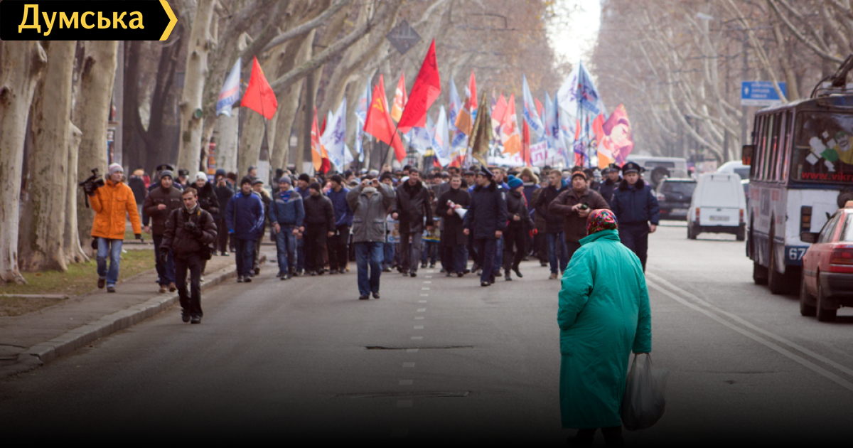 Впервые вижу общественность с 10 (десятью) флагами города Одессы! Сам хожу на митинги, но простые люди с такими флагами не ходят. Эта группа точно проплаченная или кидаловскими студентам обязаловка. Но конечно много людей пришли по своим идеологическим взглядам, непонятно только — им не нравится Свобода, а жизнь сегодня от ПР, бюджет меньше прошлого года, фактическое отсутствие(раньше по 5 раз поднимали на 20 грн) поднятие зарплат, пенсий.