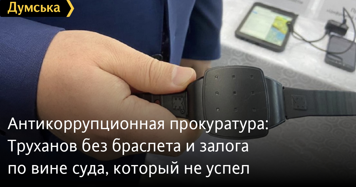 Как сообщили в пресс-службе САП, прокурор подал ходатайство о продлении обязательств, наложенных на городского голову, в том числе о ношении браслета, еще 16 июня, однако Высший антикоррупционный суд не успел рассмотреть его в положенные по закону сроки. Срок действий обязательств истек 5 июля, поэтому сейчас у одесского мэра вообще нет меры пресечения: залог вернули тем друзьям и соратникам Труханова, которые его внесли.