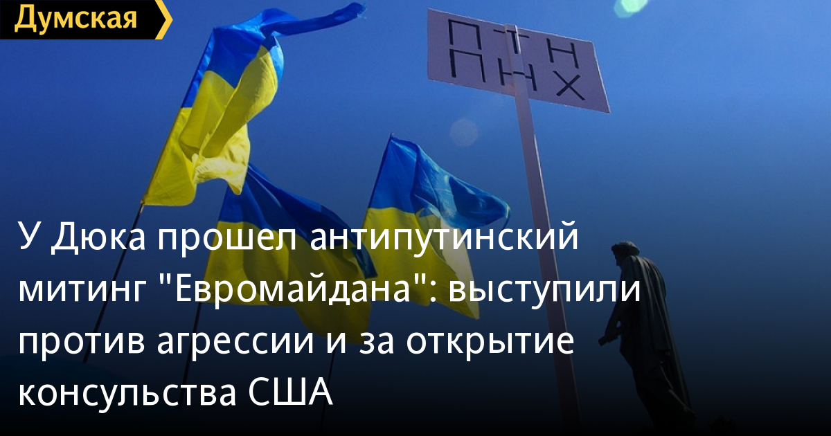 У Дюка прошел антипутинский митинг «Евромайдана»: выступили против агрессии и за открытие консульства СШАВместо заявленного накануне «антипутинского» марша сегодня возле Дюка прошел стационарный митинг. Как передает корреспондент «Думской», акция была относительно малочисленной — всего несколько сотен человек. Присутствовали многие общественные и политические деятели, в том числе глава облсовета Алексей Гончаренко, а также бронированная разведывательно-дозорная агитмашина БРДМ. Кроме дежурной пацифистской и антипутинской риторики, с высоких трибун было заявлено о инициативе создания в Одессе американского консульства. СМЕРТЬ РОССИЙСКИМ ОККУПАНТАМ! Заметили ошибку? Выделяйте слово с ошибкой и нажимайте control-enter