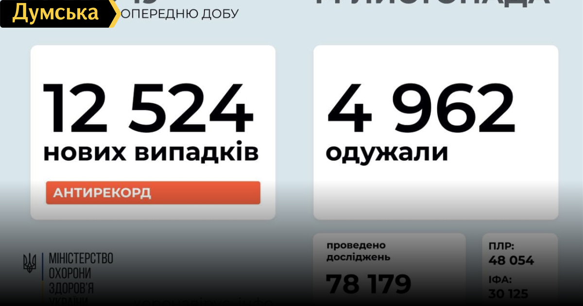 Антирекорд: в Украине более 12,5 тысяч человек заразились СOVID-19 за сутки