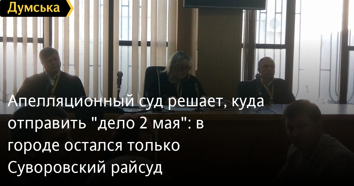 Напомним, процесс был прерван из-за самоотвода судебной коллегии Малиновского райсуда, и теперь его начнут с самого начала. В Приморском и Киевском районных судах сформировать коллегии не смогли из-за неожиданно разразившейся «эпидемии» отпусков и больничных. Таким образом, в Одессе остается только один суд, который может взять это неприятное дело — Суворовский.