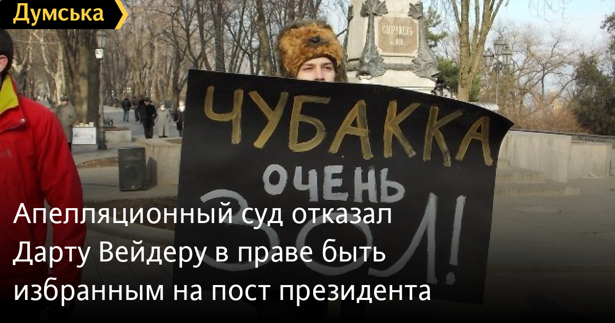 Сегодня в День космонавтики, в три часа ночи Киевский апелляционный административный суд вынес отрицательное решение относительно иска Дарта Вейдера о незаконности его снятия с избирательной гонки.