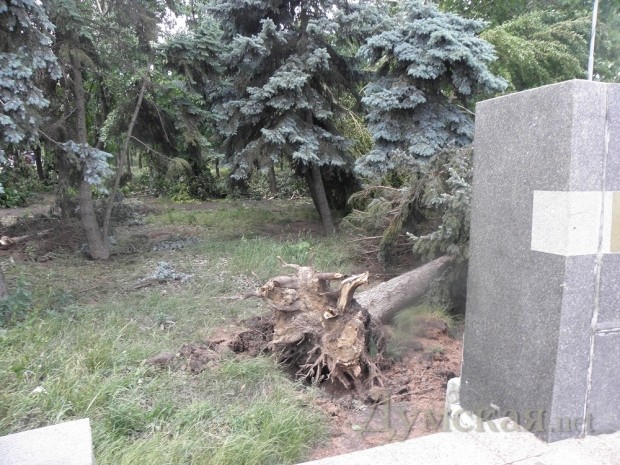 Лужи, грязь, разбросанные ветки Повалено около сотни деревьев – многие из них перекрывают аллеи и тропинки. Перепачканные и местами поломанные детские площадки и аттракционы. Так выглядит парк Победы после вчерашнего урагана.