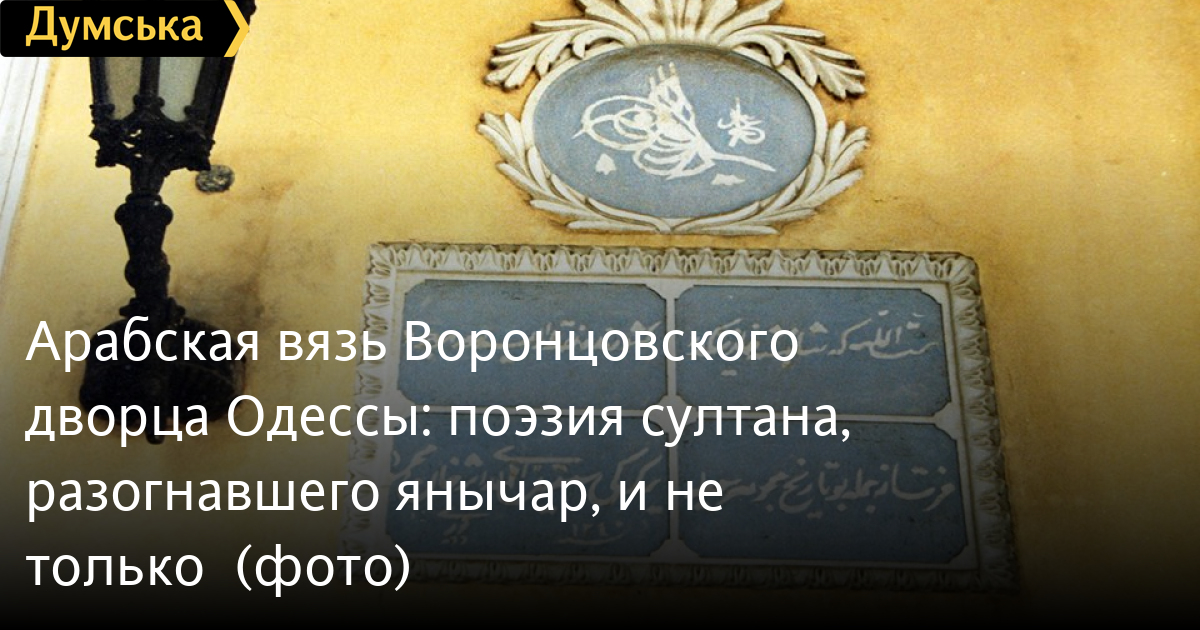 Дворец генерал-губернатора Михаила Воронцова в Одессе примечателен, кроме прочего, двумя необычными плитами с арабской вязью, размещенными на его фасаде у входа, где изначально располагался зимний сад. В свете запланированной реставрации дворца предлагаю обратить на них особое внимание.