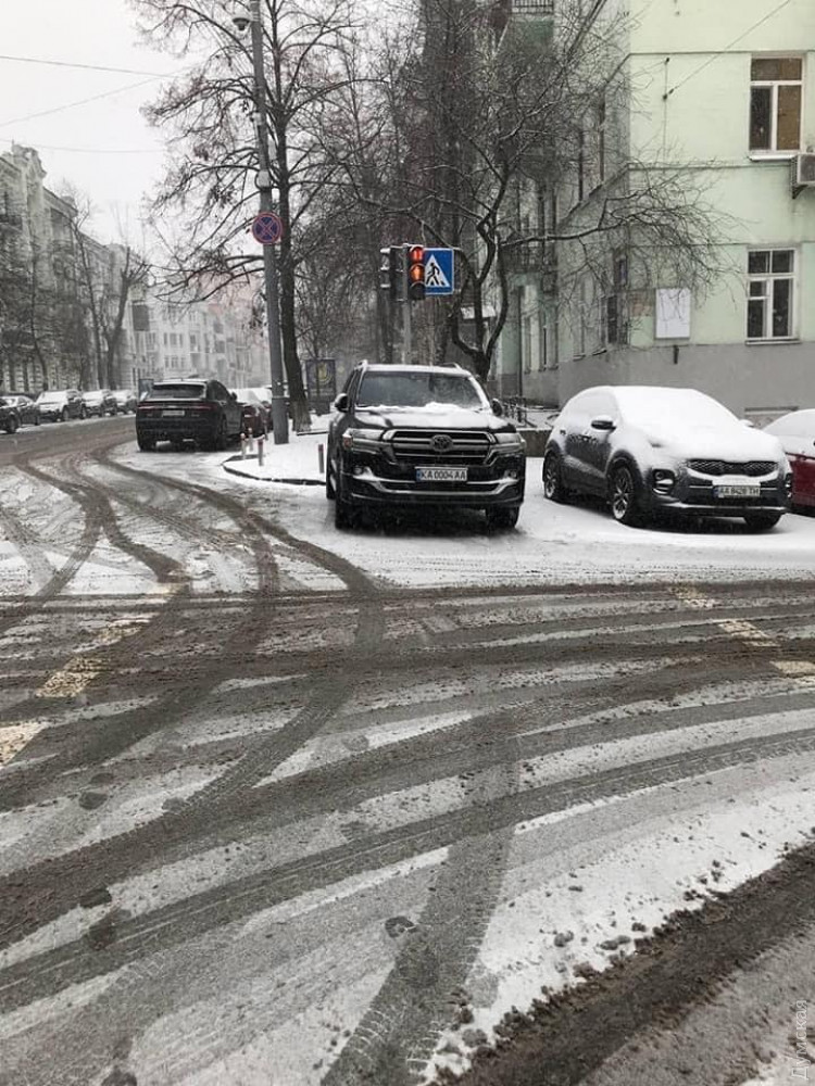 Фото стоящего на «зебре» внедорожника Land Cruiser Арахамии опубликовал заместитель начальника департамента патрульной полиции Алексей Билошицкий.