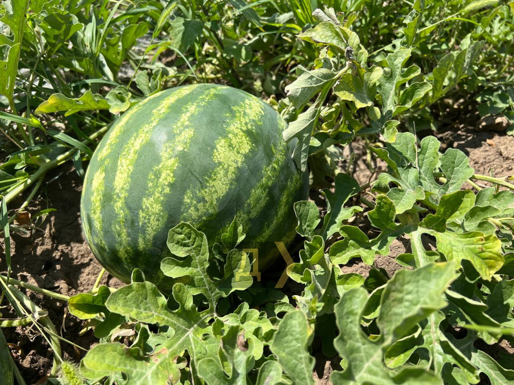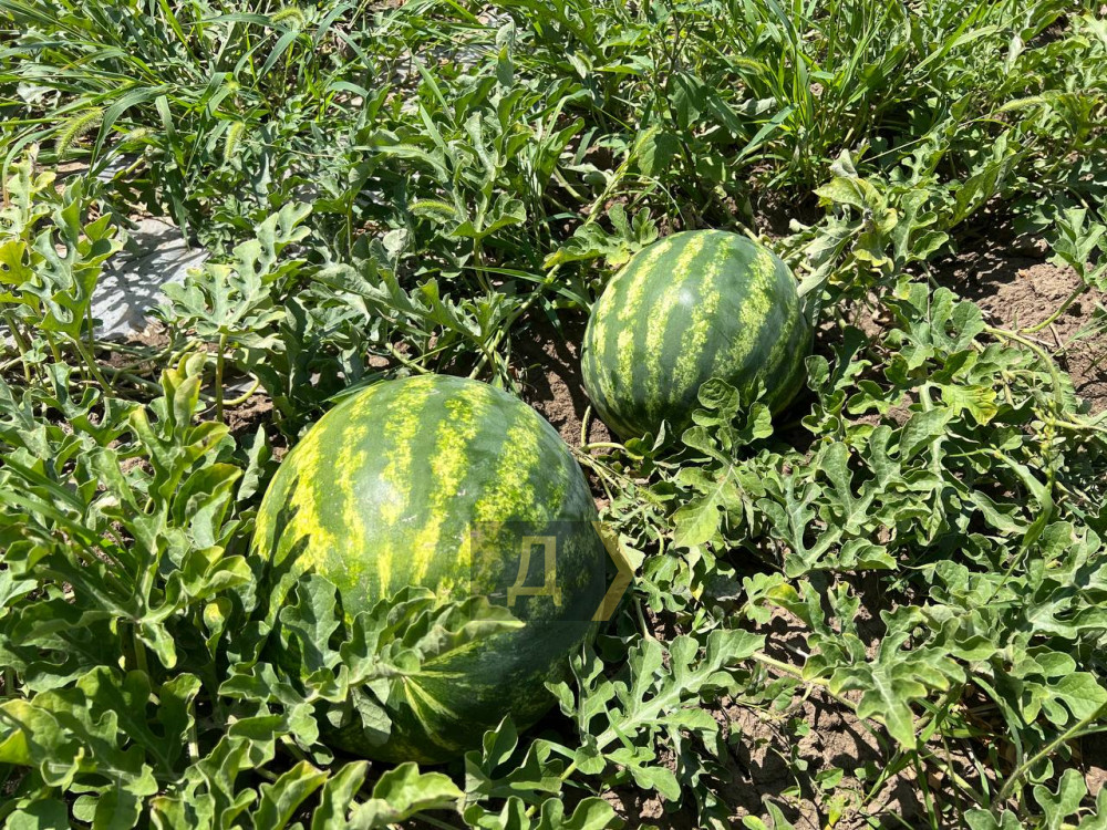 «У нас здесь около 50 гектаров бахчевых. Это арбуз, дальше дыня идет. Арбуз — ранний. Он был под дугами, то есть мы высаживали его в конце апреля, под пленку. Первый спелый был у нас в начале июля», — рассказывает руководитель агрофирмы Роман Дячук.