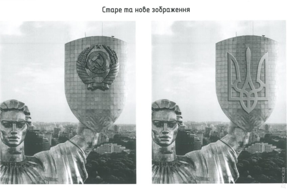 Дозвіл на заміну радянського герба на щиті київського монумента Батьківщина-мати на герб України — тризуб видала 13 липня Державна інспекція архітектури та містобудування України.