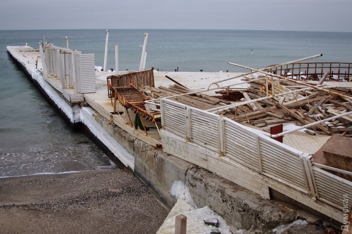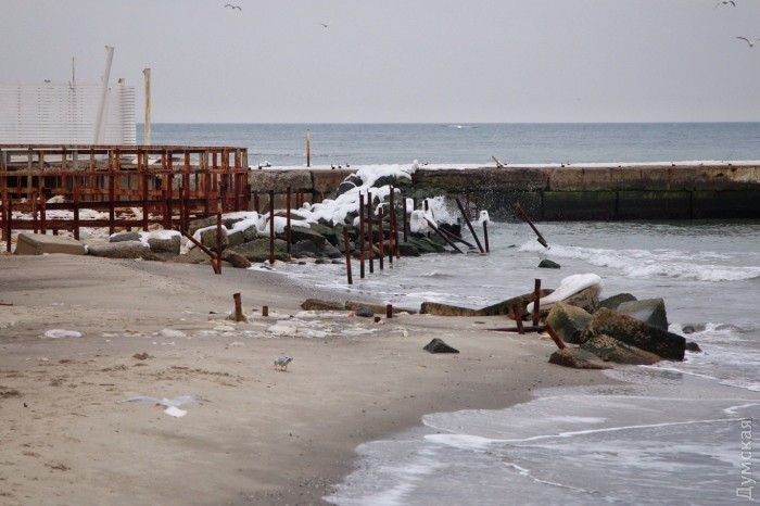 Корреспондент «Думской» прогулялся по главному пляжу города — Аркадии. Известный сотням тысяч туристов пляж, который является визитной карточкой в летние месяцы, в зимнее время представляет собою удручающую картину.