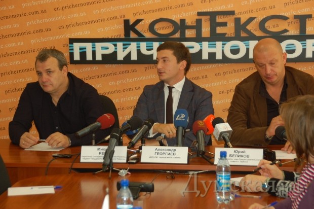 Как будет выглядеть Аркадия весной, когда уберут забор, рассказали сегодня архитектор проекта Юрий Беликов, скульптор Михаил Рева и главный лоббист комплекса «Аркадия-Сити», советник городского головы Александр Георгиев.