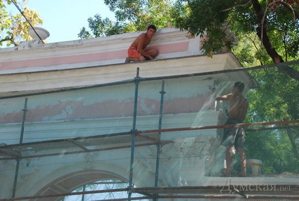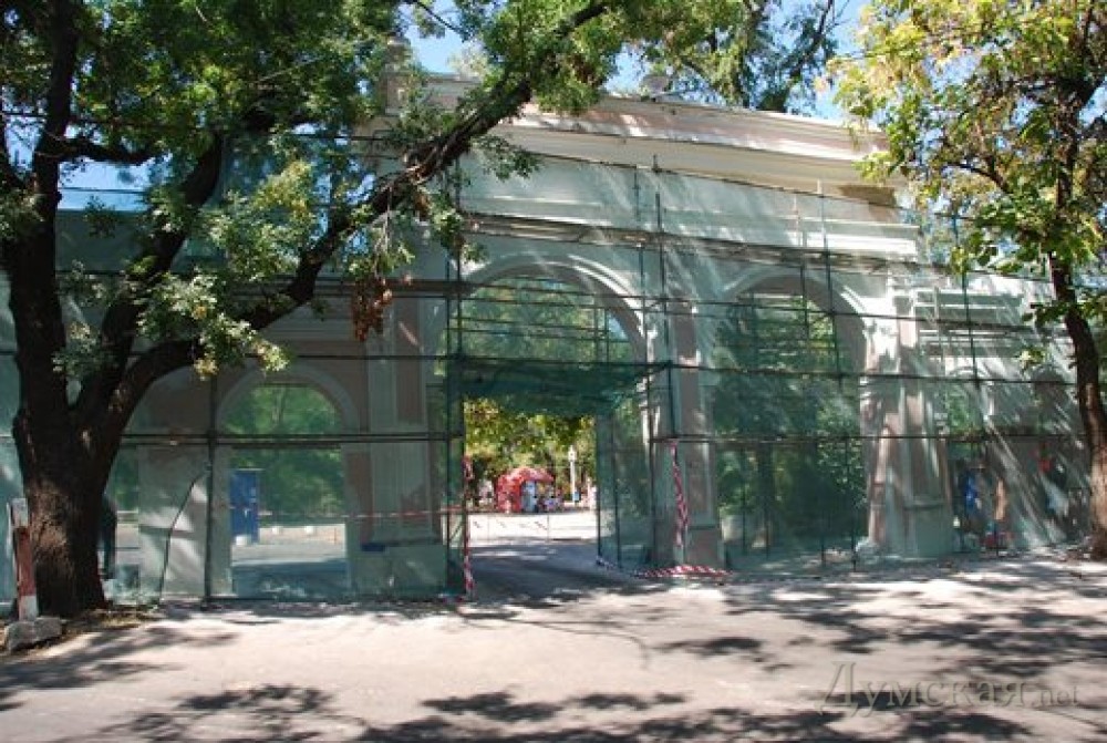 Ко Дню города одесские власти планируют завершить реставрацию арки при въезде на пляж «Ланжерон».Сегодня ход работ проинспектировал вице-мэр Одессы Николай Ильченко, сообщает пресс-служба горсовета.«Эта арка была построена в конце XIX века по проекту архитектора Торичелли. Она является достоянием Одессы. Для того, чтобы этому памятнику архитектуры вернуть его первозданную красоту, мы нашли в архиве фотографию 1903 года и теперь по этой фотографии восстанавливаем арку», — рассказал чиновник.Он подчеркнул, что ремонт выполняется за счет меценатов. Его ориентировочная стоимость — 150 тысяч гривен.Кроме того, к открытию объекта «Горзелентрест» подрезает соседствующие с аркой деревья, чтобы они не закрывали ее своими кронами.Фото: «odessa.ua»