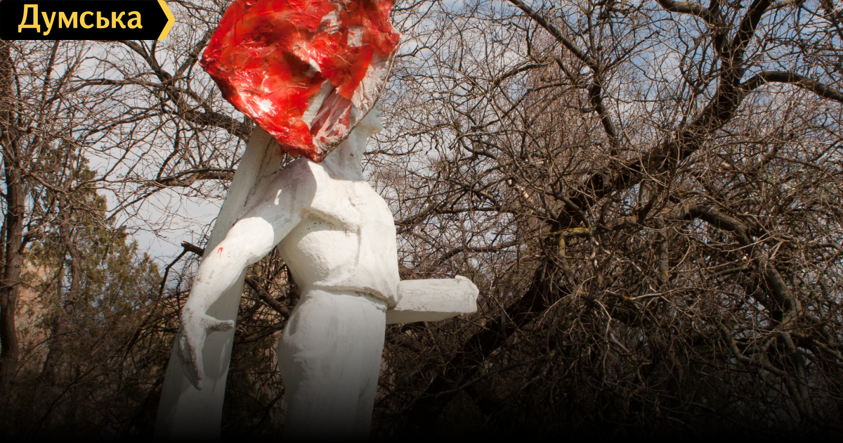 Какие-то шутники разукрасили скульптуру инженера с ракетой на территории одесского санатория им. Пирогова.