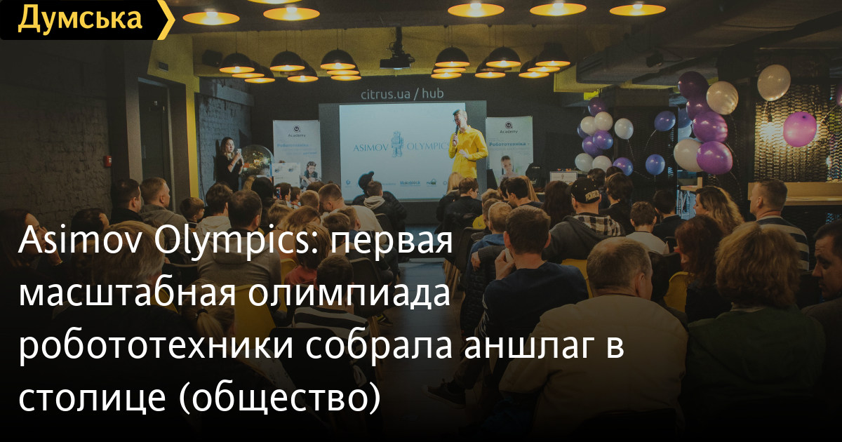 Asimov Olympics: первая масштабная олимпиада робототехники собрала аншлаг в столице (общество)В минувшие выходные в образовательном пространстве ЦеХаб в Киеве состоялась олимпиада юных роботомейкеров Asimov Olympics, организованная «Домом Роботов» и «Цитрус Академией». Фестиваль робототехники собрал почти 2000 детей в возрасте от 9 до 13 лет. Участники демонстрировали навыки программирования роботов MakeBlock на языке Scratch. Призовой фонд общей стоимостью в 100 000 гривен был разыгран среди 10 победителей соревнований в двух возрастных группах: от 9 до 11 и от 12 до 13 лет. Главный приз мероприятия — грант на образовательную поездку в Нидерланды получил 13-летний Тимофей Пивень из Киева. Остальные призеры получили гранты на образовательную поездку на аэрокосмический завод FireFly от Noosphere, образовательную ментор-сессию компании ARTKB, сертификаты на бесплатное обучение в школе робототехники «Дом Роботов» и «Цитрус Академии», а также пять роботов Makeblock от компании «Цитрус», набор для конструирования роботов на основе платформы Arduino, IT-рюкзаки от компании SoftServe. Как отмечают организаторы, главная цель олимпиады – сформировать сборную Украины и подготовить молодых робототехников к международному фестивалю MakeX, который состоится в КНР в 2019 году. Asimov Olympics стартовал 18 сентября и проходил в два этапа. Первый был организован в виде онлайн-теста из 25 вопросов, для ответов на которые давалось 30 минут. Все вопросы касались робототехники на базе платформ Arduino и Scratch. В первом этапе олимпиады приняли участие почти 2000 человек практически со всех уголков Украины. 80 участников, продемонстрировавших лучшие результаты, вышли в финал олимпиады. «Мы рады поддержать олимпиаду робототехники и принимать у себя в гостях финалистов такого масштабного и социально значимого мероприятия, как Asimov Olympics, — отметила PR-директор сети магазинов «Цитрус» Юлия Дробышева. — Будущее наших детей неразрывно связано с технологиями, поэтому мы не просто приветствуем интерес школьников к программированию и проектированию роботов. Каждый магазин «Цитрус» сегодня стал местом, где школьник любого возраста может прикоснуться к миру инноваций. Собрать своими руками первого робота, впервые запустить квадрокоптер или стать на гироборд. Тот факт, что 6 из 10 победителей Asimov Olympics занимаются в школах робототехники при «Цитрус Академии» говорит, что наши усилия помогают детям получить навыки, способные подготовить их к вызовам будущего». Организаторы фестиваля сообщают, что в январе 2019 года на сайте www.robo.house стартует регистрация на Asimov Olympics-2019. Отметим, «Цитрус» — национальная сеть магазинов гаджетов и инновационных технологий, имеет статус Apple Authorized Reseller, а также является лидером по продаже техники Apple в Украине и работает с 2000 года. Сегодня «Цитрус» — это ведущий интернет-магазин citrus.ua и сеть из 50 магазинов, работающих в уникальном для Украины формате инновационных развлекательных центров с открытым доступом к товарам, интерактивными зонами виртуальной реальности, электротранспорта, устройств умного дома. При «Цитрусе» работает «Цитрус Академия» — образовательно-технологичное пространство по обучению гаджетам и технологиям. Школы «Цитрус Академии» находятся в четырех городах Украины — Одессе, Киеве, Харькове и Днепре. За пять лет академия обучила более чем 50 000 человек. СМЕРТЬ РОССИЙСКИМ ОККУП