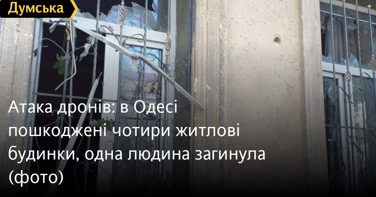 Чотири житлові будинки зруйновано та одна людина загинула внаслідок атаки іранських безпілотників на Одесу. Про це повідомив міський голова Геннадій Труханов.