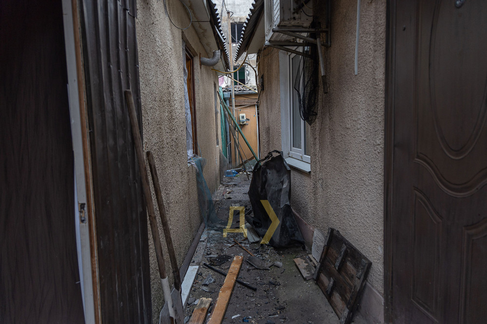 Постраждали від атаки й мешканці прилеглих одноповерхових будинків. На подвір'ї одного з них зяє величезна вирва глибиною в людський зріст. На фасад іншого вибухова хвиля відкинула понівечений автомобіль.