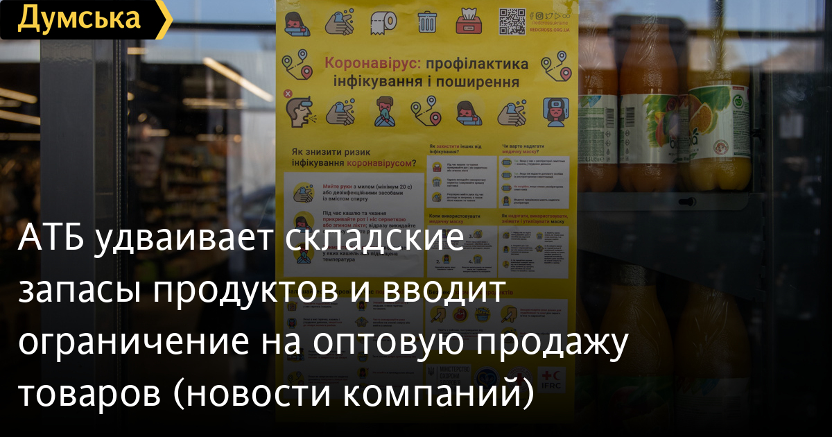 Чтобы предоставить покупателям всю необходимую продукцию, сеть «АТБ» на весь период действия общенационального карантина вводит мораторий на реализацию оптовыми партиями следующих групп товаров: сыпучие, бакалея, заморозка, антибактериальные и дезинфицирующие средства. Помимо этого, компания вводит в ассортиментный перечень магазинов отечественные аналоги позициям собственного импорта из таких стран, как Италия, Польша, Словакия и т.д., что является дополнительной мерой обеспечения всех необходимых товаров повседневного потребления.