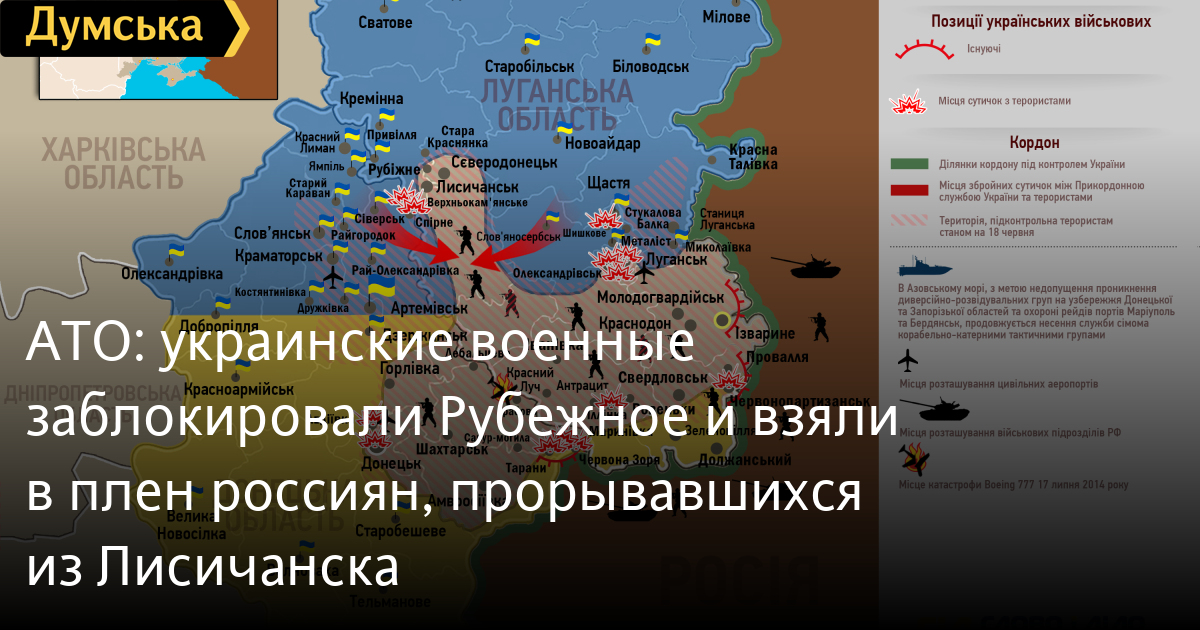 «По приказу Главнокомандующего Вооруженными Силами колонна бронетехники бандформирования была разбита: три бронемашины уничтожено, 23 боевика взято в плен, в том числе и раненый главарь. Среди пленных есть представители чеченской национальности. Все боевики имеют российское гражданство. Продолжается освобождение от боевиков города Рубежное Луганской области», — говорится в сообщении. .