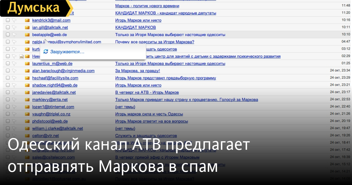 За несколько дней до выборов одесситы стали получать десятки писем, расхваливающих кандидата по 133 округу Игоря Маркова.
