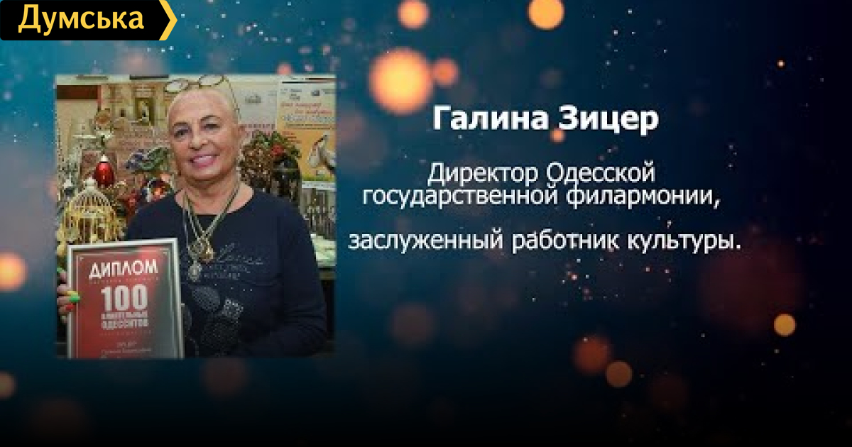 Галина Зицер — директор Одесской государственной филармонии, заслуженный работник культуры.
