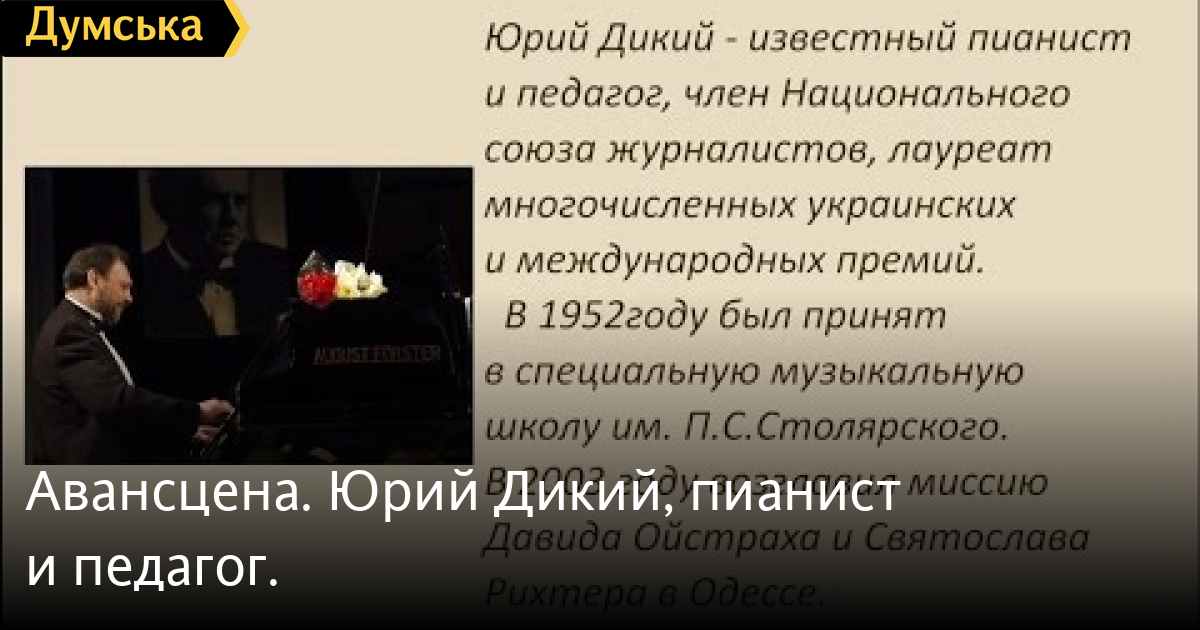Авансцена. Юрий Дикий, пианист и педагог.