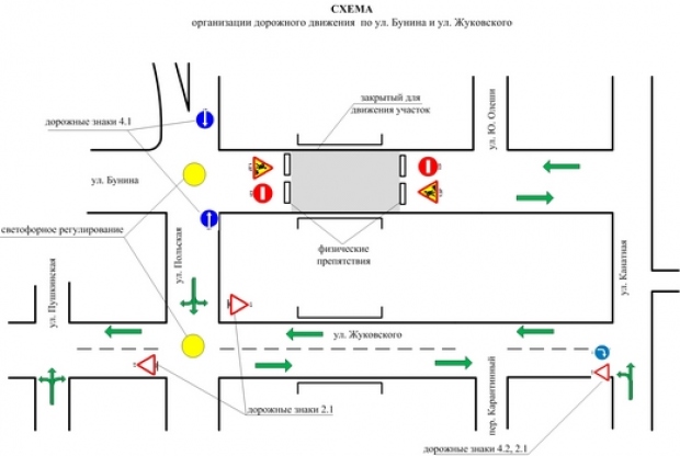 «Коммунальное предприятие «СМЭП» для обеспечения безаварийного дорожного движения разработало схему движения транспорта. Движение автомобильного транспорта по ул. Жуковского от ул. Канатной до ул. Пушкинской меняется с одностороннего на двустороннее», — добавили в мэрии.