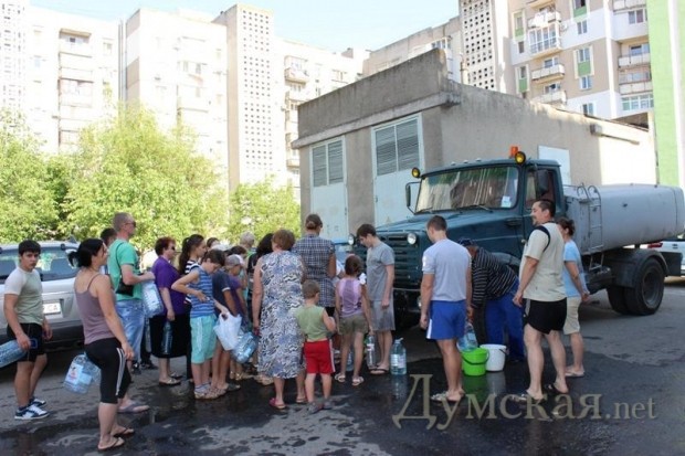 В Бостоне, США, пару лет назад случился крупный прорыв магистрального водопровода. Большая часть города осталась без воды. Воду доставляли ровно тем же способом — пожарными и поливочными машинами, — и разливали в баклажки, ведра, бутылки. Ну и очередь выстраивалась, само-собой.