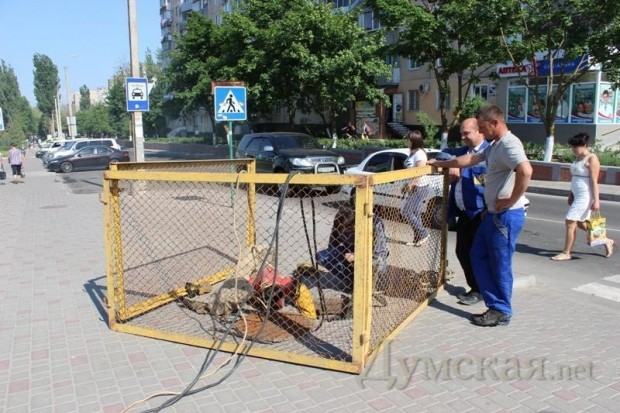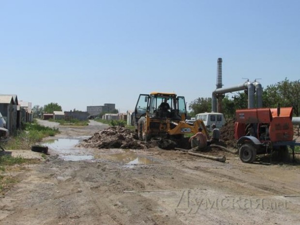 На помощь южненским работникам приехали специалисты Одесского припортового завода. Они проводят ремонтные работы по улицы Химиков недалеко от Бизнес — Центра «Плаза». Сотрудники ЦВО приехали со своей техникой и оборудованием. Специалисты завода устанавливают «заглушку» для того, чтобы возобновить водоснабжение по резервной трубе.