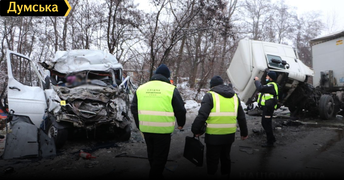 Полицейские задержали 44-летнего водителя грузовика, причастного к совершению ДТП, в котором погибли 13 человек и еще семеро травмировались. Об этом сообщает отдел коммуникации ГУНП в Черниговской области. Предварительно известно, что рейсовый автобус сообщением Борзна-Чернигов двигался в направлении областного центра. По данным следствия, навстречу ему ехал грузовик под управлением жителя Черниговского района, который не справился с управлением, выехал на встречную полосу и допустил столкновение с автобусом. В результате ДТП 11 человек погибли на месте (в том числе водитель автобуса), один человек скончался в карете скорой, еще один – в больнице. В медицинские учреждения Чернигова с травмами различной степеней тяжести госпитализировали семерых человек, среди которых — водитель фуры. После оказания медицинской помощи мужчина был задержан. В настоящее время он находится в специализированной палате под стражей. Ему готовятся сообщить о подозрении в совершении преступления, предусмотренного ч. 3 ст. 286 УК Украины (нарушение правил безопасности дорожного движения, повлекшее гибель нескольких человек). СМЕРТЬ РОСІЙСЬКИМ ОКУПАНТАМ! Помітили помилку? Виділяйте слова з помилкою та натискайте control-enter Новини по цій темі: 10 листопада 2025: Смертельна аварія під Одесою: водія виправдали через відсутність доказів 30 серпня 2025: Машина вилетіла в кювет: мер Рені потрапив в аварію, його мати загинула, а маленький син у лікарні (фото) 18 серпня 2025: Троє загинули, один у лікарні: на трасі Одеса-Рені водій Mercedes не пропустив фуру (фото) 28 липня 2025: П'яний на "Ягуарі" або гіпертонік? Звільнений топ-посадовець одеської поліції хоче повернутися на службу |