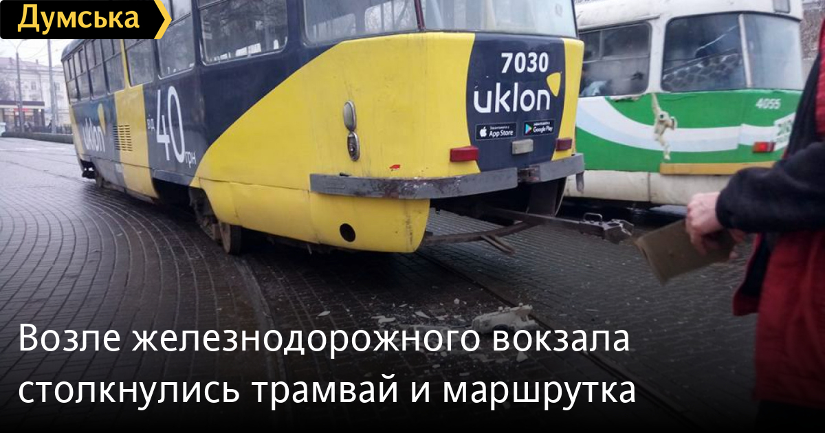ДТП с участием трамвая и маршрутки произошло примерно в 9:00 на пересечении Водопроводной улицы и Старосенной площади, передает корреспондент «Думской».